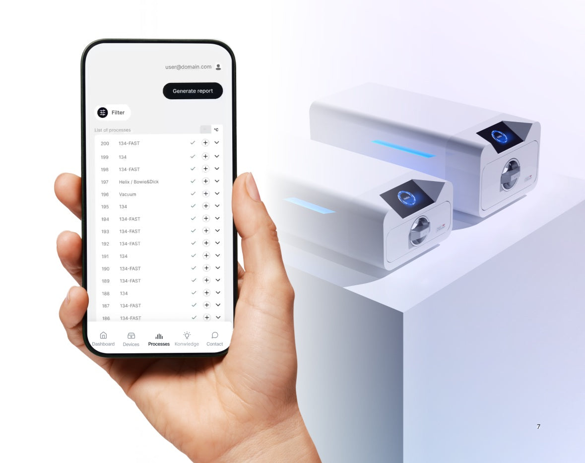 Vergessen Sie Papierberichte und externe Drucker – die My.Enbio App speichert alle Sterilisationsdaten sicher in der Cloud, sodass Sie jederzeit und überall darauf zugreifen können. Berichte, Schulungen, Servicehistorie und Support sind sofort verfügbar und werden nahtlos mit Ihrem Autoklaven synchronisiert – für einen intelligenteren und einfacheren Arbeitsablauf.