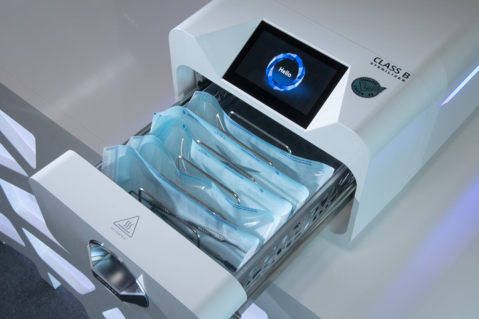 Enbio Pro is a Class B steam autoclave, the highest sterilization class used in medical environments. Class B autoclaves are designed to sterilize all types of instruments suitable for steam sterilization, including hollow and complex instruments, as well as wrapped packs.